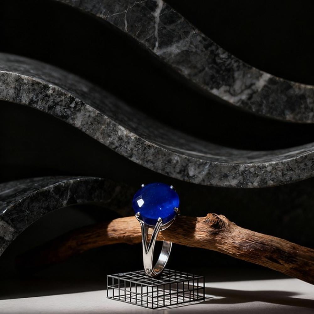 يتميز هذا الخاتم بجمالية ساحرة تجسد زرقة سماء اليمن الصافية، حيث يلتقي العقيق الأزرق النادر مع أناقة الفضة في تناغم استثنائي. يُقدم تصميمًا ملكيًا عصريًا يناسب الشخصية الطموحة، مع نقش يدوي دقيق يعكس براعة الصاغة اليمانيين. كل قطعة تحمل بصمة فريدة تجمع بين عمق اللون الأزرق وروعة التصميم الملكي.