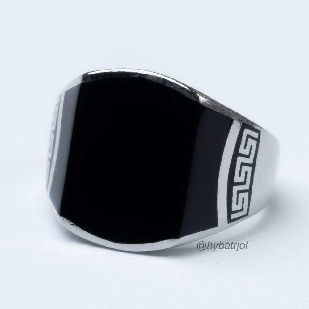 هذا الخاتم مصنوع من الفضة عيار 925 بتصميم شبابي أنيق وفخم. يتميز بتطعيمه بمينى اللون الاسود مصقول على شكل مربع كبير يغطي واجهته بالكامل، مما يمنحه مظهرًا راقيًا وجذابًا. الجوانب مزينة أيضًا بمينى بُنيه تتكامل مع التصميم العام.